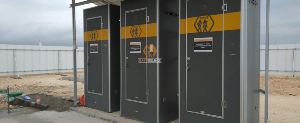 Unit toilet dengan tiga bilik, cocok untuk area ramai atau acara besar dengan kebutuhan sanitasi tinggi .